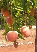 熟すと赤くなるマンゴウ