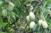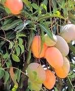 熟すとオレンジ色になるマンゴウ