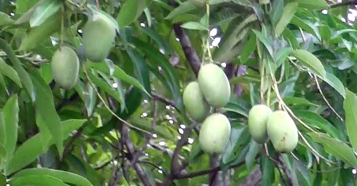 大木に鈴なりに実るマンゴウ